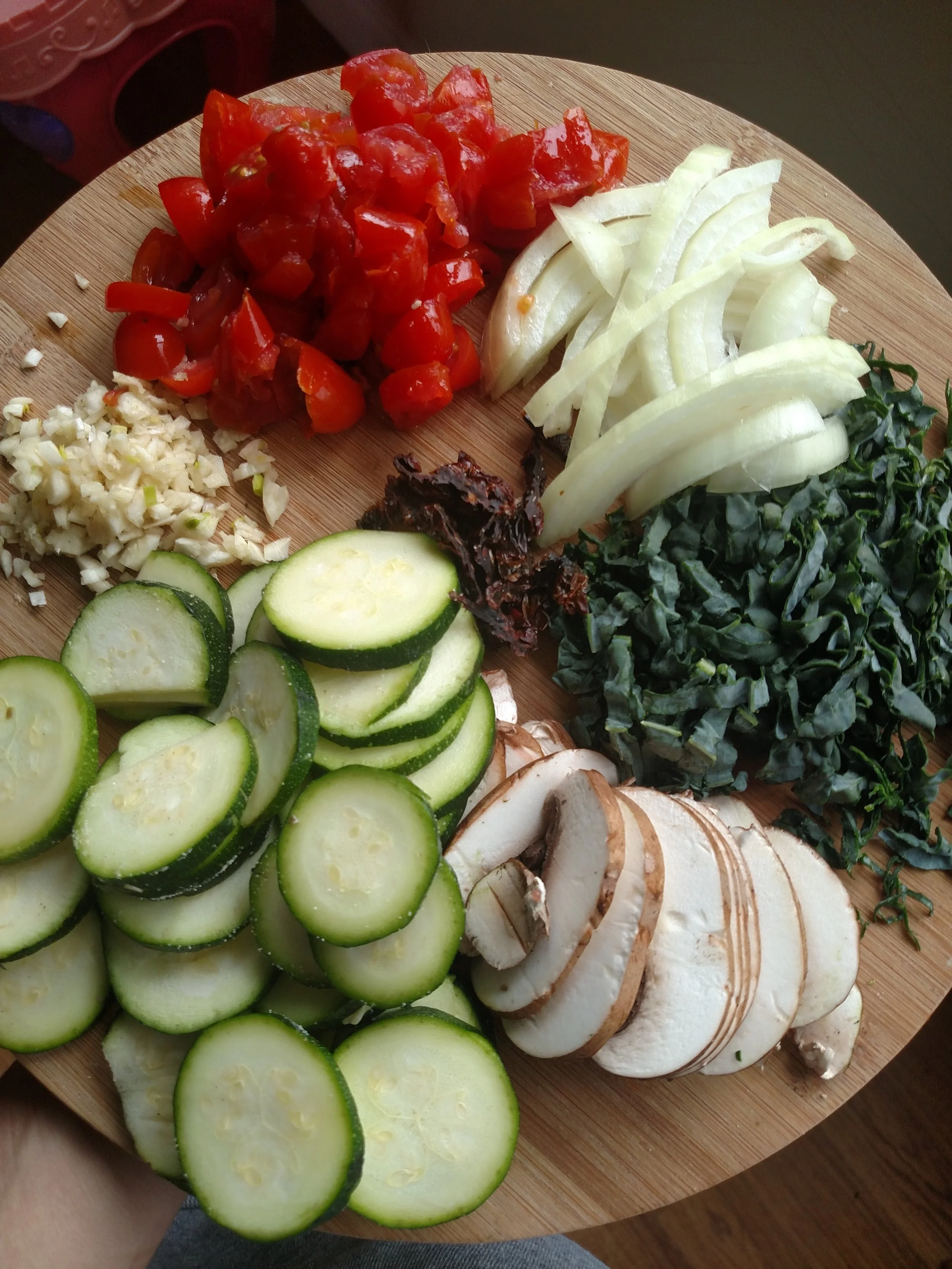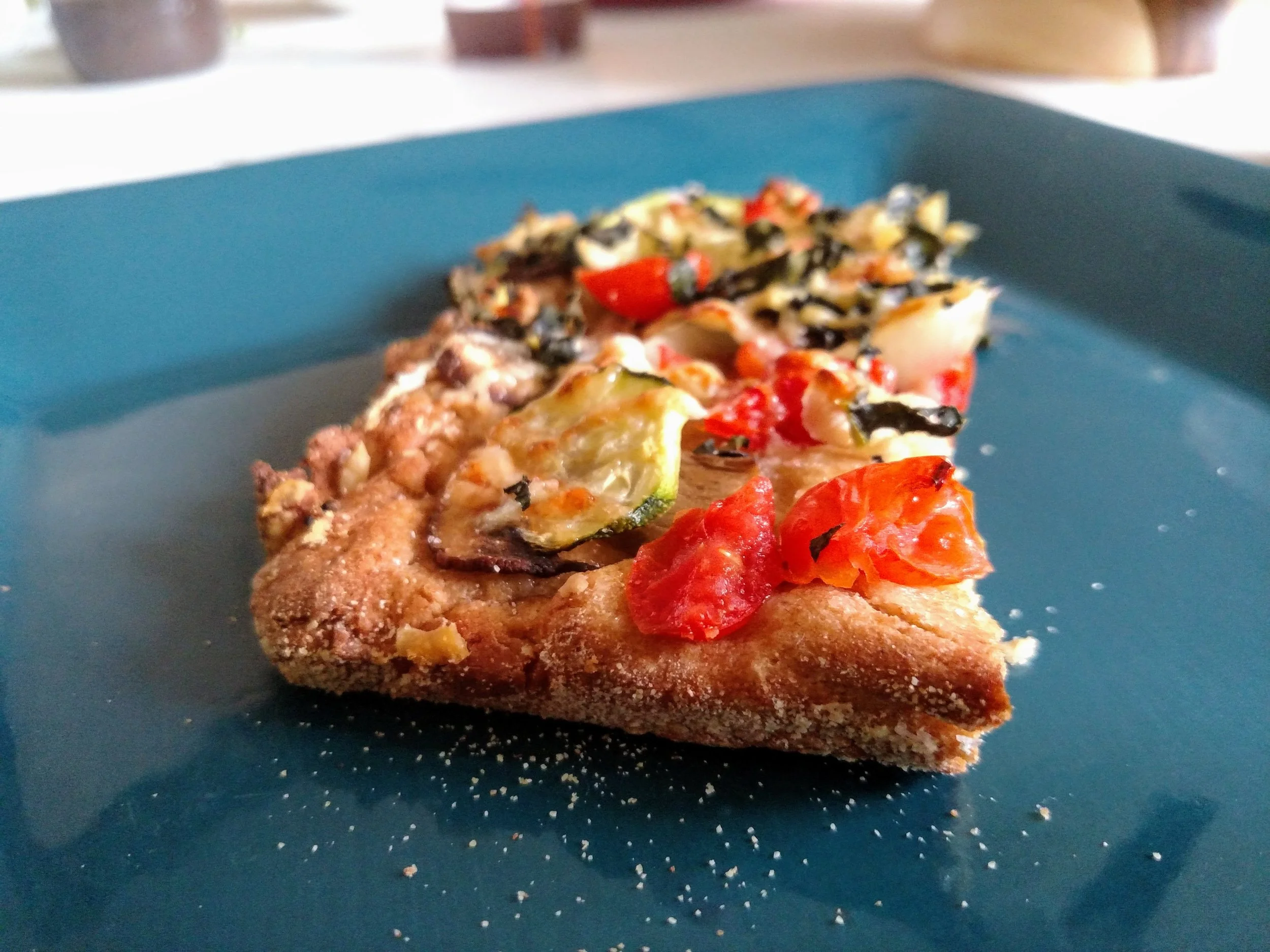 Note: the pizza we made here was drizzled with EVOO, shaved Parmigiano Reggiano, zucchini, mushrooms, tuscan kale, grape tomatoes, onions, garlic, and sun-dried tomatoes and lots of sea salt :) No sauce or mozzarella needed to make a meal the kids scarfed down!